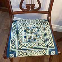 Here we show just a few examples of past orders for which we received photos. If you have ordered custom upholstery in the past and have photos available that you want to share, we would be thrilled to include them. On the next page are small images of patterns suitable for covering chair seats and backs, stool tops, benches and ottomans. Most are overall patterns, several are stripes which can be applied vertically or horizontally. Several stool tops are shown in specific sizes. Please refer to individual pattern pages for details on repeats and other size information and to CUSTOM SERVICES for additional information. You can also use the CONTACT form for questions on Custom Upholstery.